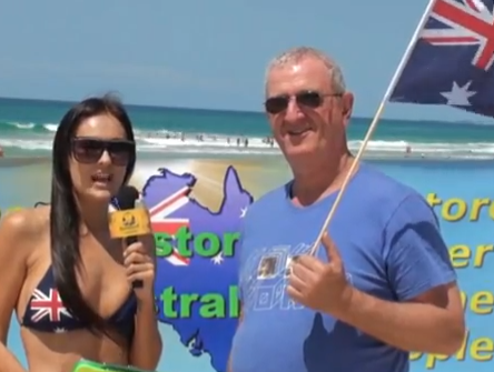 The website also features a video of Mr Holt being interviewed by a bikini-clad 'reporter' on a beach talking about changing the constitution of Australia.